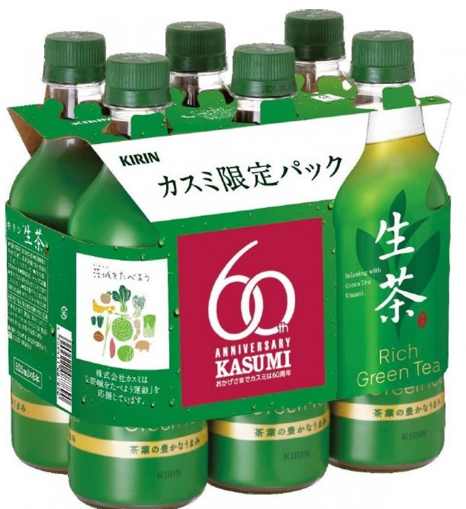 また同日から、キリンビバレッジ株式会社より、カスミ60周年を記念した「キリン生茶『カスミ60周年茨城をたべよう限定パック』」も販売されます。