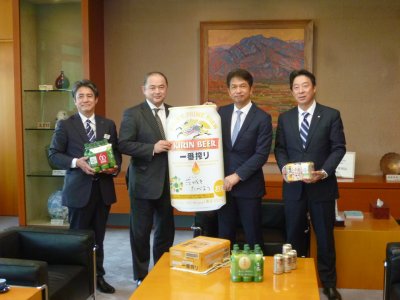 販売開始にあたり、6月25日(金)にキリンビール株式会社茨城支店支店長らが知事を訪問し、商品を紹介しました。