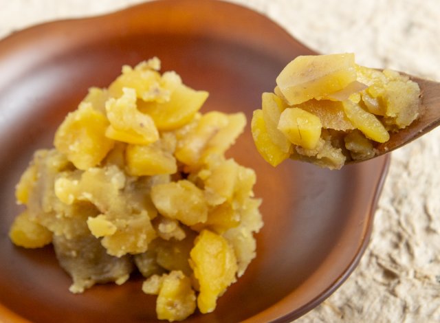 材料は茨城県産栗と砂糖のみで作られた人気商品の栗ペーストと栗甘露煮を合わせて作っただけ!絶妙な割合と最小限の火入れで仕上げています。