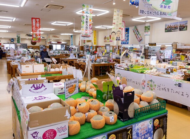 生産量日本一を誇る茨城のメロン。その大部分を生産する鉾田市(ほこたし)の JAほこた「ファーマーズマーケット なだろう」では、茨城県オリジナル品種のメロン「イバラキング」を中心に、アンデス、クインシー、なだろうオリジナルブランドのなだろうレッド、アールスなどのメロンをはじめ、朝採り新鮮野菜や果物、手作り加工品等を販売しています。