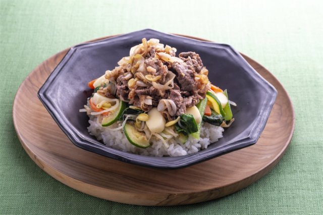 ねぎ塩焼肉と「さけるチーズ」のナムル丼