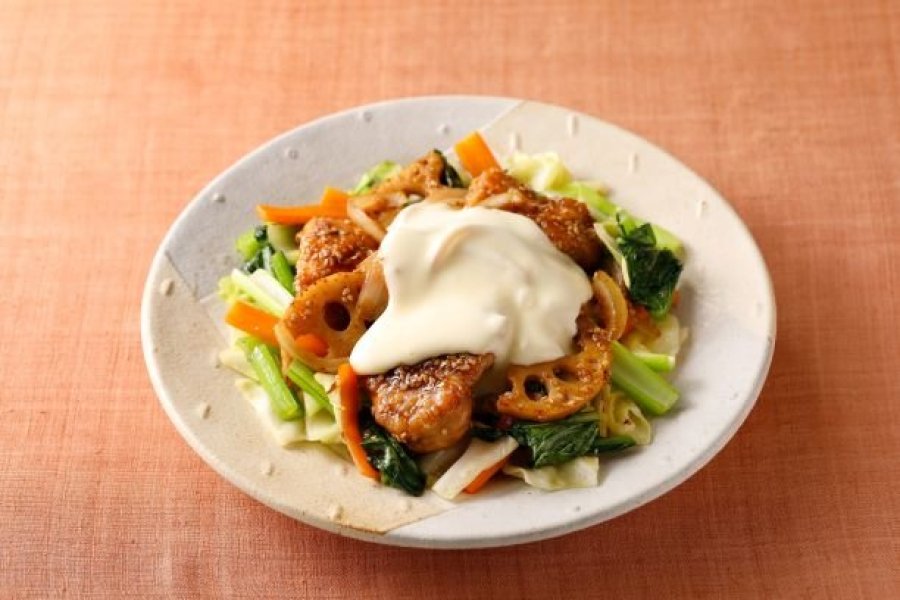 甘辛チキンはもちろん、たっぷりの野菜もチーズソースにからめてお召し上がりください。