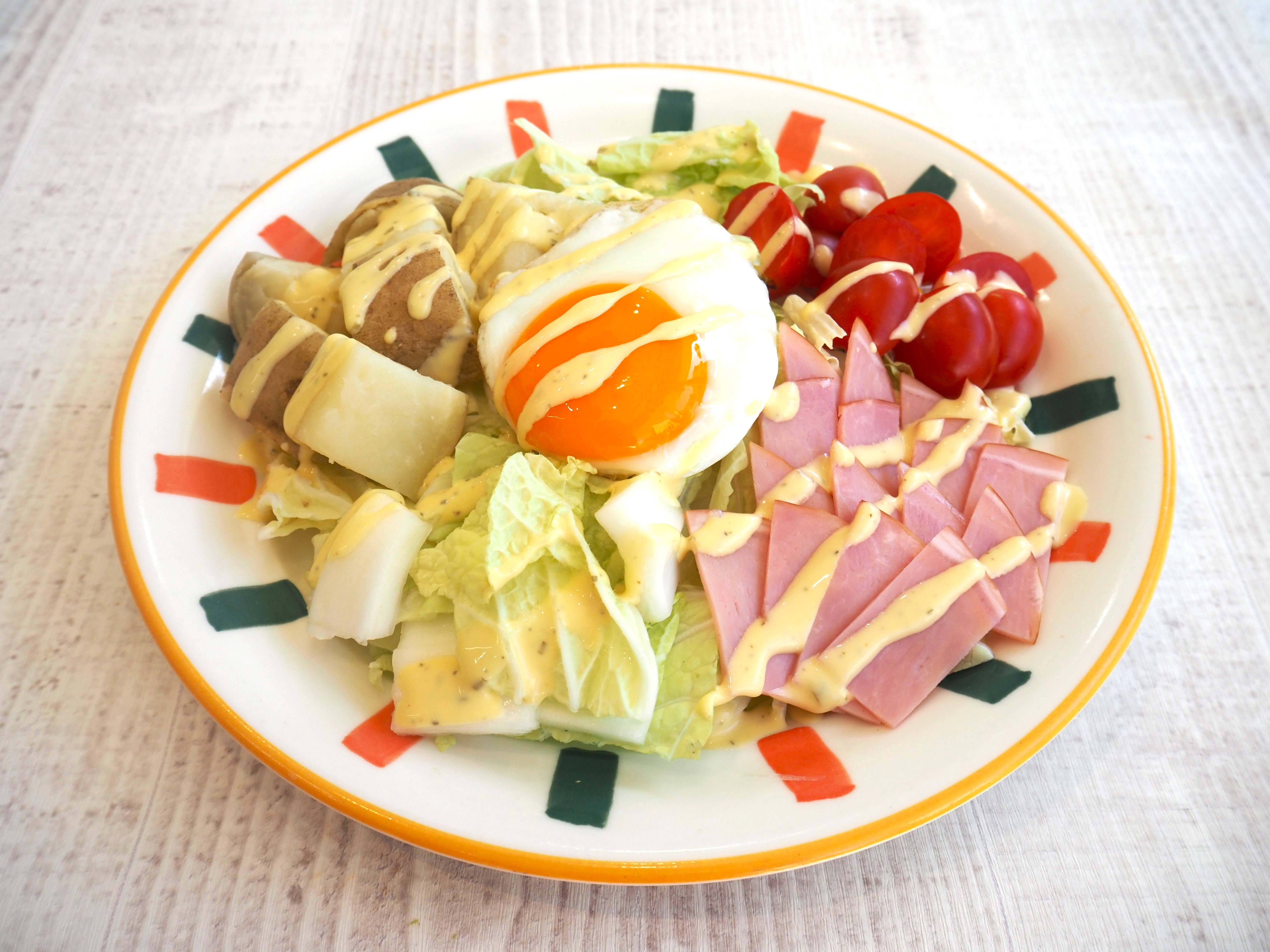 白菜のシャキシャキとした食感とコクのあるペイザンヌサラダドレッシングがよく合います。