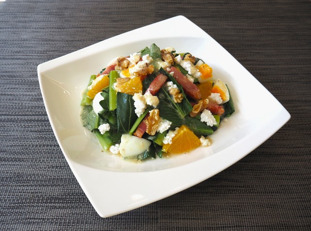 オレンジの酸味とベーコンの塩気がアクセントになっています。
