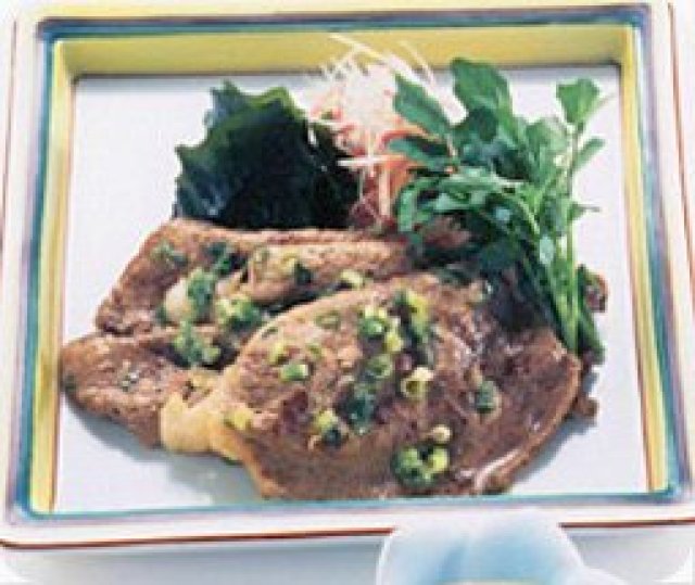 牛肉、わかめ、みょうがたけ、クレソンを盛り、4を添える。