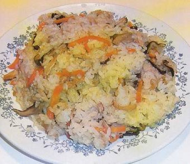 ごはんを炊いて、炊き上がったところに具の半分をのせ少し蒸らす。