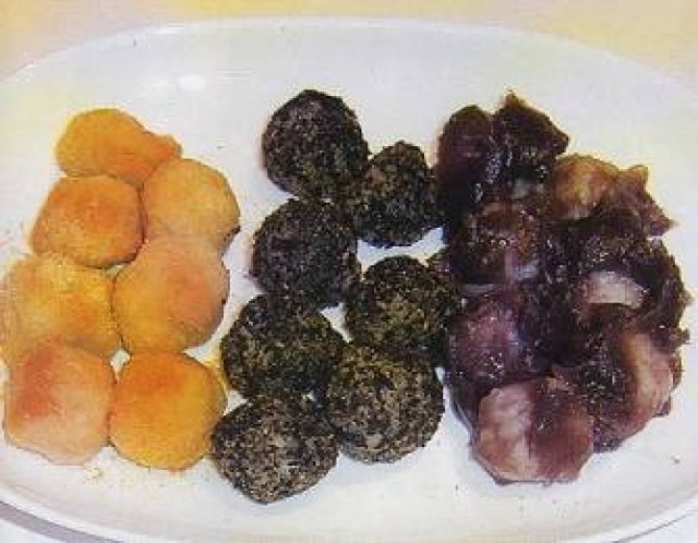 きな粉、黒ごまに好みの砂糖を混ぜ、3にまぶして、あんとの三色だんごを作る。