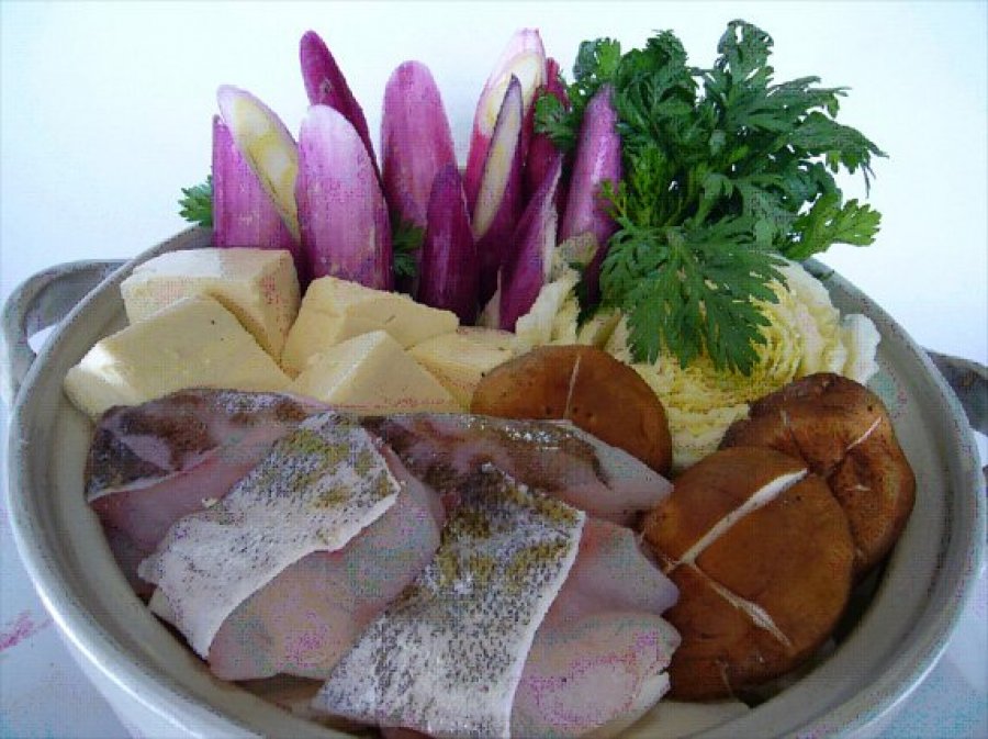 (1)を火にかけ,沸騰直前にこんぶを取り出し,調味料Aを入れる。煮だったら??を入れて煮立て,お好みのポン酢などでいただく。