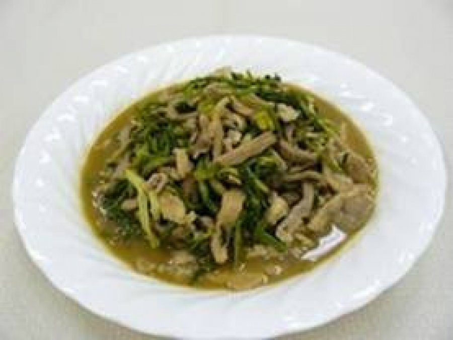 セリと豚肉の細切り炒め