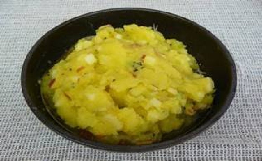 鍋で充分に柔らかくなるまでゆで、さらに水分を飛ばしてつぶす。