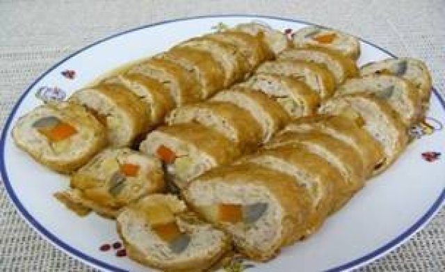 長ネギ、ピーマン、人参、ごぼうは小さく切り、鶏ひき肉、片栗粉、酒、塩を加えて混ぜ合わせる。