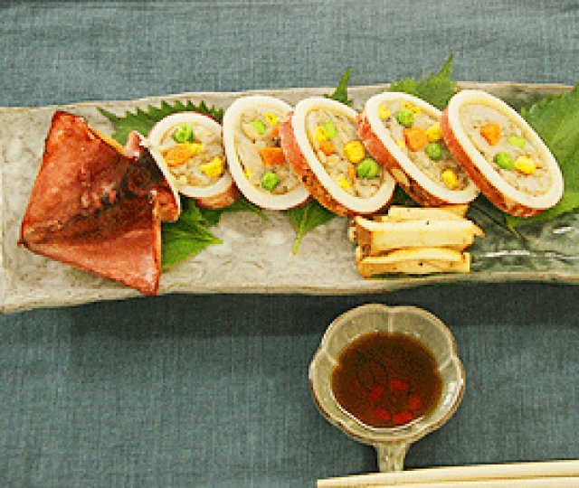 きのこたっぷりイカの姿焼き