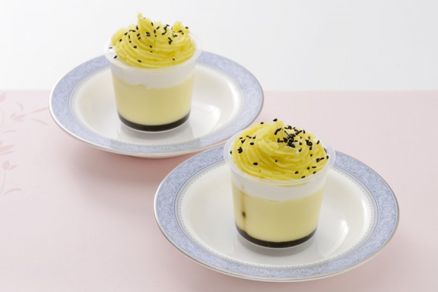 さつまいもペースト・・・さつまいもをつぶし、砂糖・牛乳・バターを加え混ぜ、ペースト状にする。※カップに入れる時に絞り袋等で飾り付けをする。
