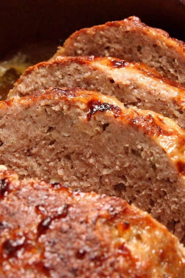 ミートローフを切り分けて器に移し、エリンギとソースを添える。