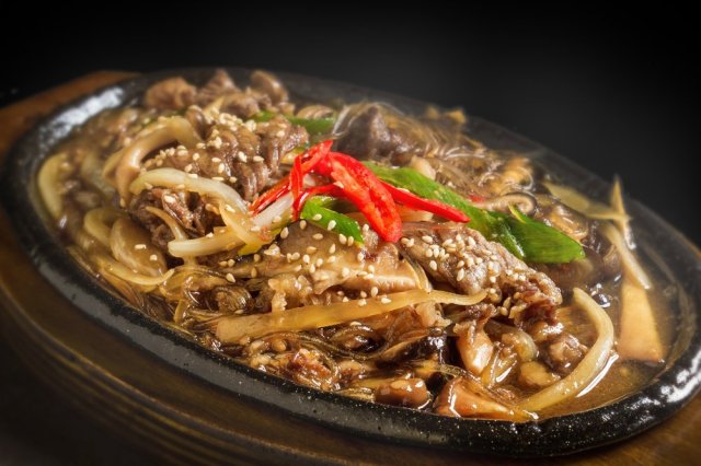 深めのフライパンでごま油を加熱して牛肉を色が変わるまで炒める。