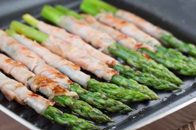 豚肉に塩とこしょうをもみこみ、アスパラは根元を切り落とす。