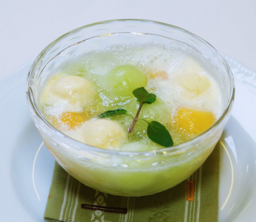 どこか懐かしいメロンクリームソーダもひと手間かければ、果肉、ゼリー、アイスが一度においしく楽しめます!