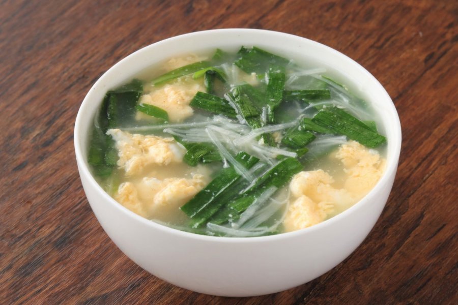 ▽にらと卵の香味スープ