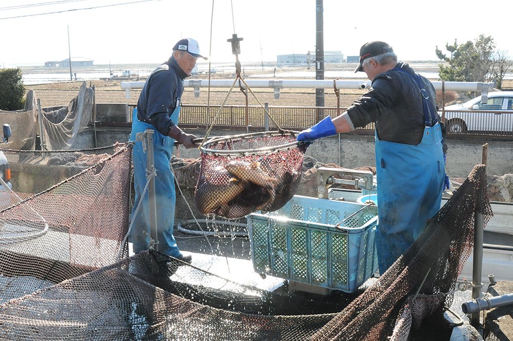 清浄な地下水が流れるしめ池で数日泳がせた後に水揚げし、さばいて鮮度抜群なコイの切り身(フィレ)をすぐに真空包装し、急速凍結しました。