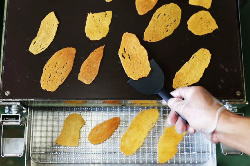 ほしいもを鉄板でプレス焼きしたこの商品は、油脂や添加物を一切使用しておりません。小さなお子様にも安心して食べていただける商品です。