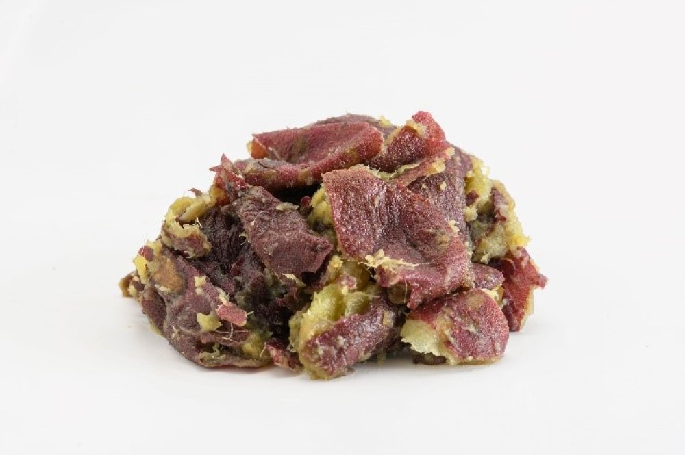 ほしいもピールと国産小麦粉を合わせた生地にブランデーやクルミなどを加えて焼き上げました。サツマイモの皮に含まれるクロロゲン酸やアントシニアンなどは、老化防止や視力改善に役立つと言われています。