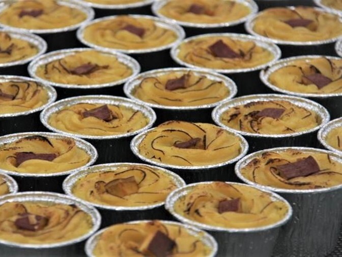 半熟スイートポテトは、サツマイモの他、茨城県産ブランド卵の奥久慈卵、北海道産生クリームとバター、きび糖を使用しています。 上層部分は、なめらかで、やさしい味わいです。下層部分は、角切りのサツマイモが入っており、食感の変化をつけています。最後まで美味しく食べられるようにこだわりました。