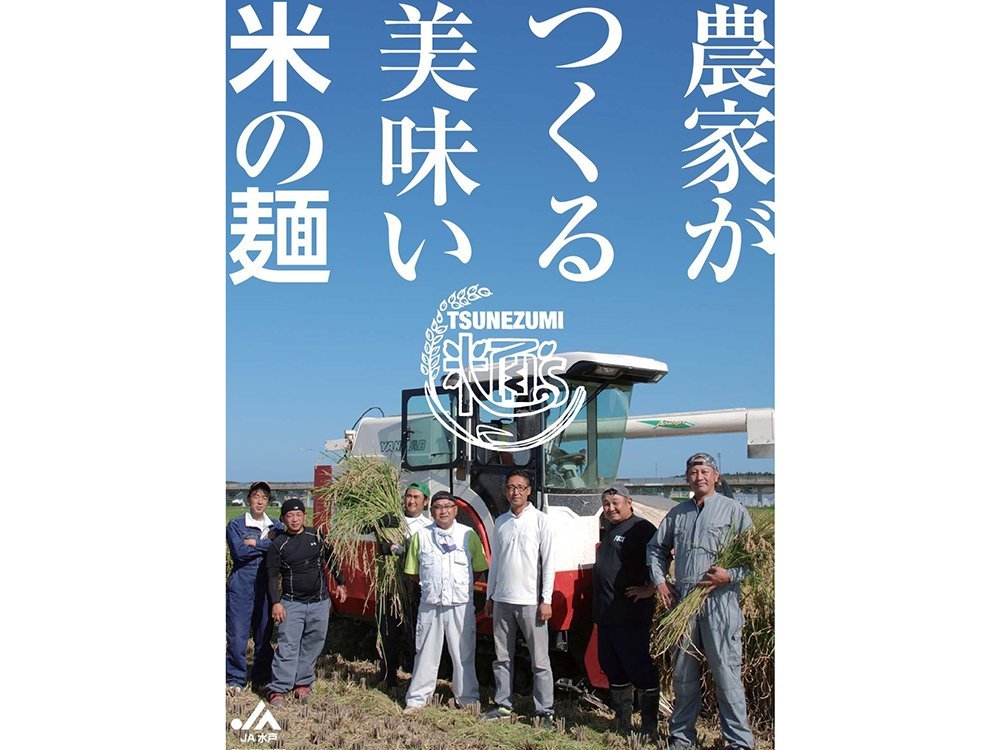 水戸市「常澄地区(つねずみちく)」の若手農家たち「TSUNEZUMI麺’S(つねずみめんず)」が自ら生産する米(コシヒカリ)を、専用工場で自家製麺する安心安全な麺です。