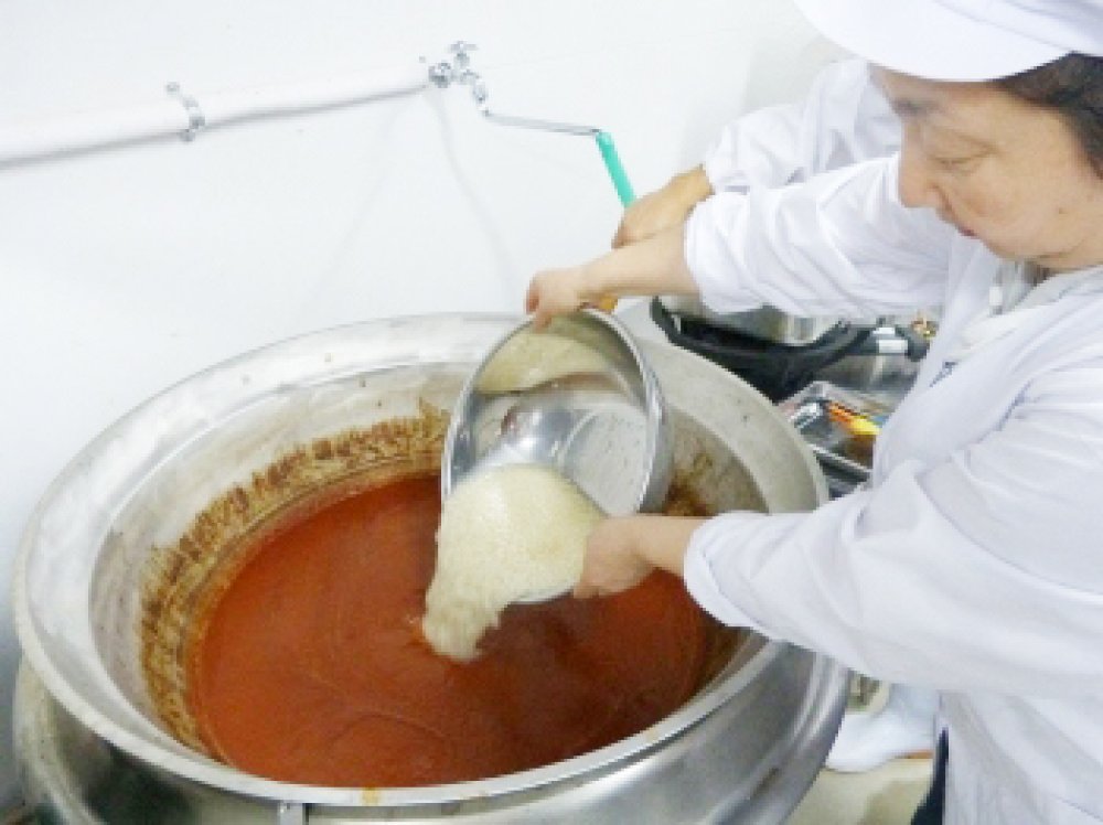 特別栽培(※)のトマト、特別栽培のコシヒカリで作った塩糀、それにスパイスを加えた手作りソースがトマト塩糀です。 保存料・着色料などの添加物を一切使用しないオーガニックをコンセプトにしています。 (※)…極力、農薬と化学肥料を使用しない栽培方法