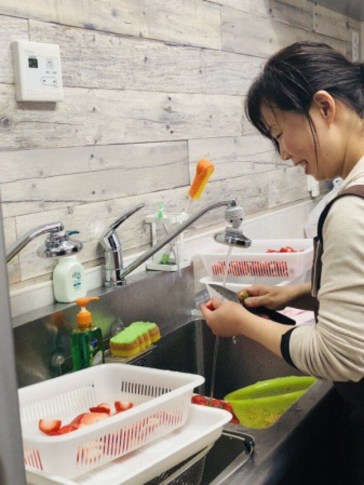 大切に育てたイチゴを一粒一粒、必ず両手でやさしく摘み取ったものを使っています。