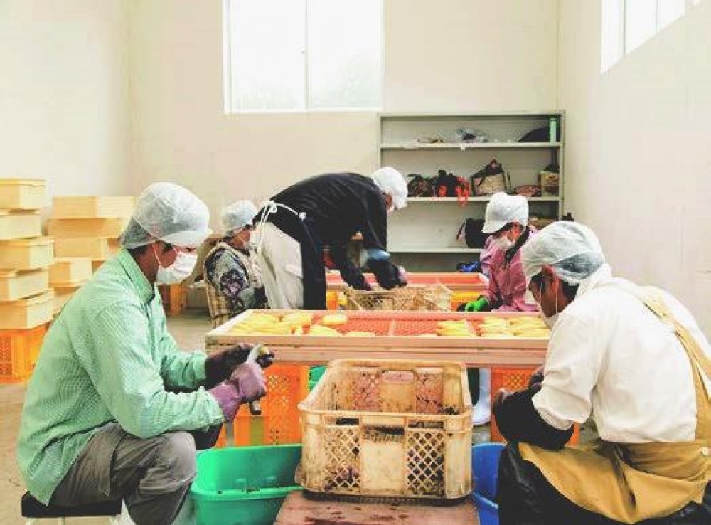 味はもちろんですが、食品は見た目も大事です。本社では、サツマイモの皮を丁寧に取り除くことで、従来のイメージを覆した、黄金色の干しいもを製造しています。