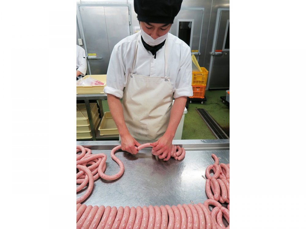 羊の天然腸を使用し、1本1本丁寧に手でひねり仕上げています。 ソーセージを噛んだ時の旨味のある肉汁と歯ごたえが特徴です。