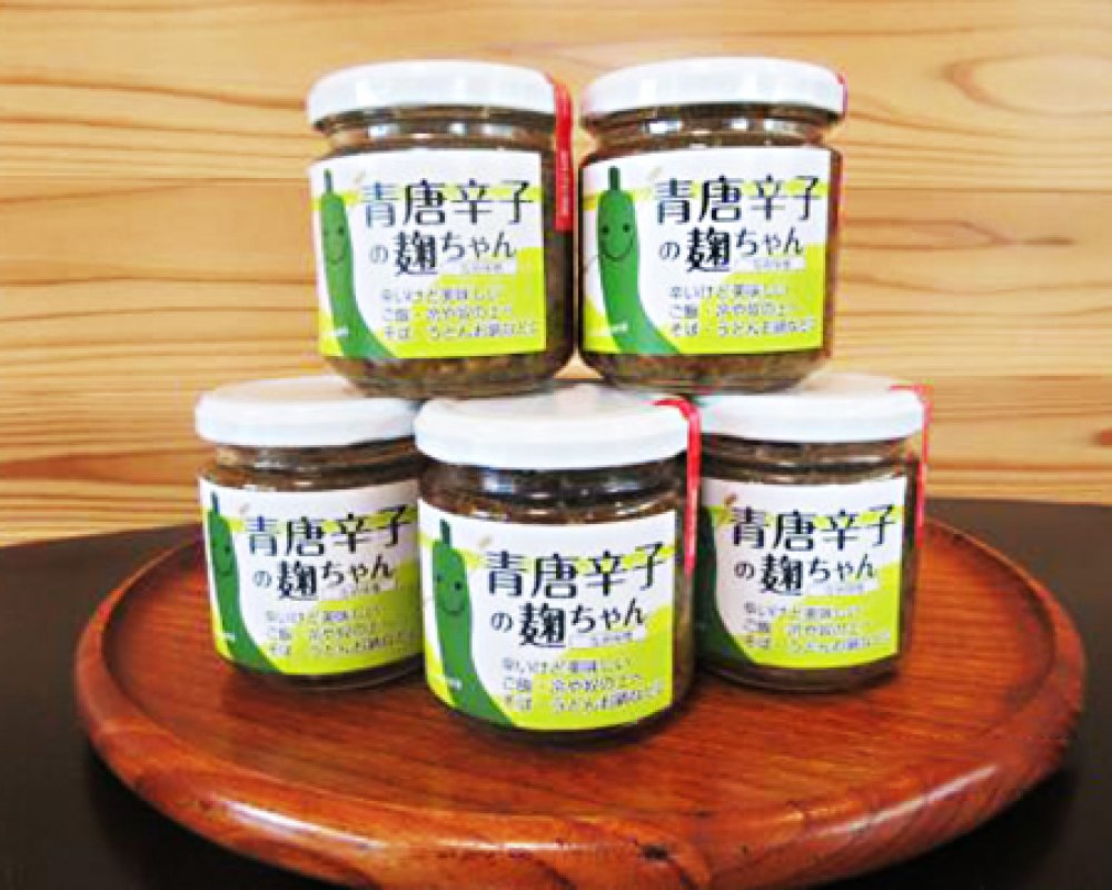 原料の米麹は、手作り味噌が人気の「おばらの里」味噌加工グループが生産したものです。 本商品の生産者自身も参加しているこの加工グループの味噌づくりには歴史があり、麹の製造用具に長い時間をかけてたくさん住み継いだ麹菌が、造る味噌や米麹を美味しくしてくれています。まさに伝統の神様からの恵みです。 この伝統の米麹が「青唐辛子の麹ちゃん」をよりまろやかな味わいとし、美味しくしているのです。