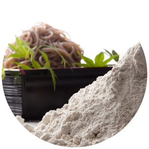 そばは穀物のソバの実を原料とするそば粉を原料に作っています。