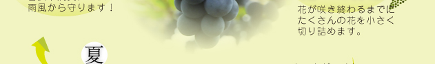 夏、摘粒、栄養が十分に回るように、一房一房丁寧に粒を抜きます。