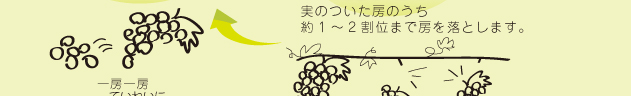 房落とし、実の付いた房を、全体の1~2割くらいになるまで落とします。