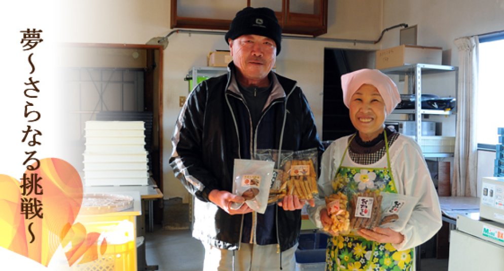 「ものを作ることが大好きで、喜んでくれるお客様の顔を見るともっと頑張ろうと嬉しくなります。最近では、加工所に直接買いに来てくださる方も増えてきたので、大川農園の知名度をもっと上げて販路を増やしていきたいと思います。今後はおかきだけでなく、うちで作った米を使って大福を作ろうかななんて思っています。あとは息子が早く結婚して、そのお嫁さんと一緒に加工品を作るのが夢です。」