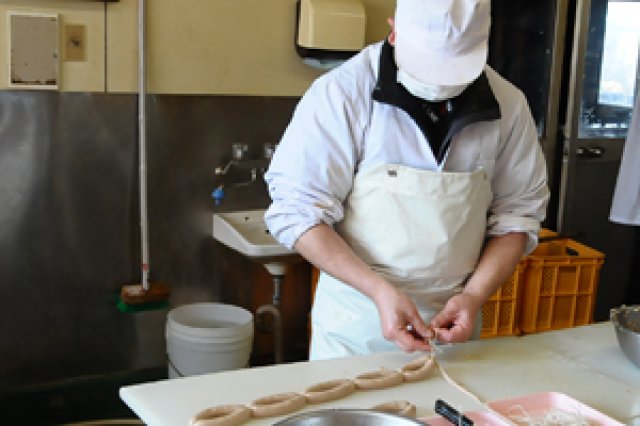 食品加工会社が製品の"味"以前に一番気を付けているのは、衛生管理です。直江さんも衛生管理には大変気を使っているそうです。 「食品衛生の基本である清潔で衛生的な取扱いを徹底しています。殺菌洗剤での手指の衛生管理、清潔な白衣の着用、設備清掃の徹底など、お客様に安心して召し上がっていただける食品を提供するために最善を尽くしています。」 学園手造りハムの会の製品の代名詞でもある、桜の薪でのスモークは、その香りもさることながら、桜の薪に殺菌作用もあることから使用しているのだそうです。こうした衛生管理のもとで、おいしいハムやソーセージ、ベーコンは生まれます。