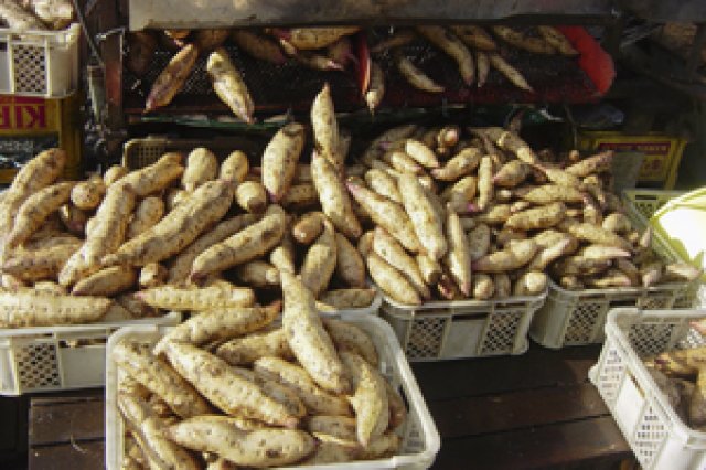 ひたちなか市で、『ほしいも村 飛田勝治農園』を営む飛田勝治さんと裕子さん夫妻。『たまゆたか』という品種を中心に、いずみ、紅はるか、人参芋、紫芋等およそ8種類のほしいもを作っています。 ほしいもの中でもっともポピュラーな品種である『たまゆたか』ですが、飛田さんの作る『たまゆたか』はただのそれとは違うようです。 「親父から経営を受け継ぎ、カミさんと二人で直売所を建てて直売も始めました。お客さんの声が直に聞けるようになったことで、それまでより商品に対する責任感を強く感じるようになりました。もっとおいしいって言ってもらえるものを作りたい。そのためには、良い原料いもを作ろうと、優良品種の選抜を始めました。」 飛田さんは、優良品種の種イモの選抜と肉質・形状の選抜も重ね、研究を続けました。最後に【T.T34号】という品種を見出した頃には、選抜開始から20数余年もの歳月が経っていたそうです。 形も味も良い飛田さんの『T.T34号たまゆたか』は、ほしいも産地を盛り上げたいという飛田さんの思いから、近隣農家さんにも無償で配ったところ、「良いほしいもができる」と評判なのだそうです。