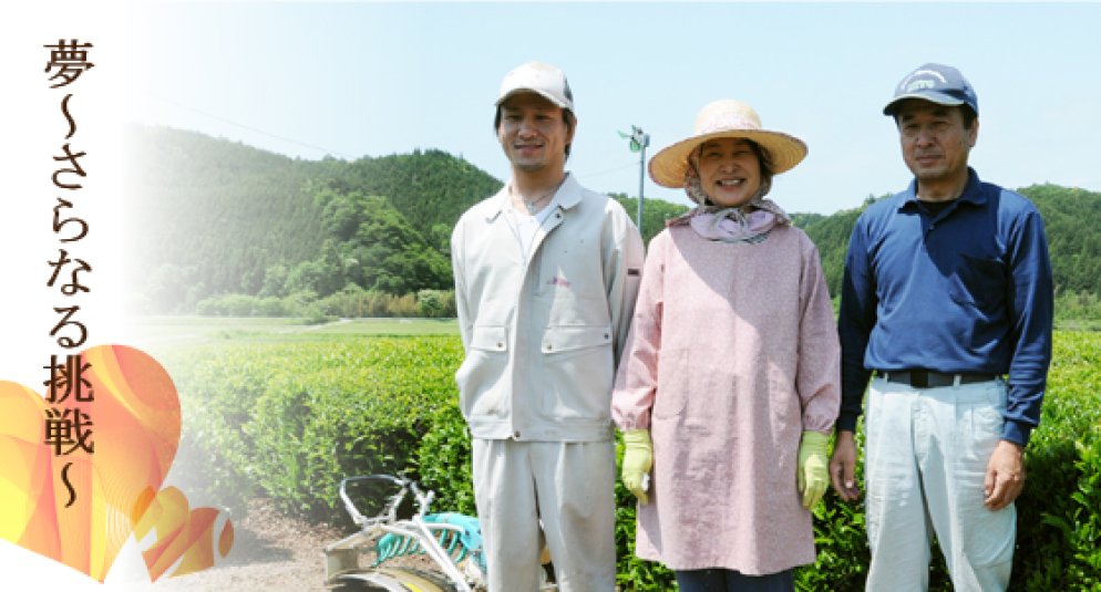 城里町の西部から東部を横断するように流れる藤井川。古内地区(城里町常北地区)には、この清流に沿うように、この地区で生産されている古内茶の茶畑が広がっています。 高安智子さんは、古内茶を栽培・販売する高安園の高安達夫さんの奥さま。達夫さんと共にお茶を栽培しながら、高安園の店頭に立つ看板娘です。 智子さんは平成23年に女性農業士に認定され、女性農業士団長としてドイツに研修に行くなど、地域のリーダーとして茨城農業発展の一翼を担う存在でもあります。 高安園を訪れると、まずおいしいお茶と、智子さん手作りの季節感あふれるお茶請けが振舞われます。お茶のおいしさはもとより、智子さんのおもてなしの心と明るい人柄に魅かれてやってくるリピーターも多く、高安園はいつもたくさんの人で賑わっています。
