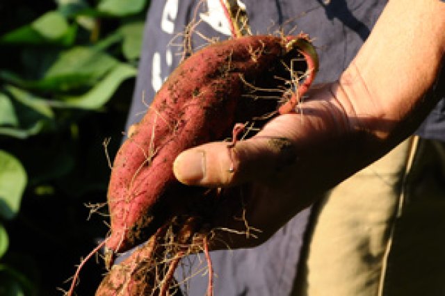 吉田さんがさつまいも創りをしている鉾田市(旧鹿島郡旭鹿田地区)の土は、柔らかい火山灰土、黒土・赤土でできています。「”茨城県土作りコンクール最優秀賞”の実積と知識を伝承しています。50年の智恵を活かし、100%の土作り、100%の自然エネルギーでさつまいも創りをしています。」と吉田さん。 30ha(坪数:9万坪)全域の畑に、機械を使わず、全て手作業で一本一本丁寧に植えつけるそうです。 また、種芋も自家生産しており、健全な細胞を持った親苗で子芋を育て、種芋にするそうです。この種芋でとれた苗を植え付け(定植)、できた芋(孫芋)が商品になります。3年近くかかってお客様の元にさつまいもを届けることができます。