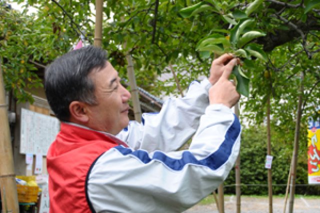 りんご作りは、「何よりも、おいしい!が第一」と語る黒田さん。おいしいりんごを作るには、まずりんごの木の植物生理を理解して、基本に忠実に育てることが大切なのだそうです。 黒田さん「りんごは、冬の剪定(せんてい)作業が味を80%決める、なんて言うのですが、来年良いりんごがなるかどうかは剪定前にわかるんですよ。芽の質、芽の周りの枝の太さ、葉の形などをまず見極め、剪定していくのですが、それは目先の欲との戦いなんです。良い実も、ならせ過ぎてはいけない。どんなに良い芽でも切らなきゃいけない時があるんです。これは、農業全般に言えることだと思いますが、技術ばかり手に入れても良いものはできません。おいしくなるもならないも、その人がどう育てるかだと思うのです。計画性を持って、失敗したら反省し、そして工夫をしていける"人"を作る。これがおいしいりんごを作る為に一番大切なことだと思います。」