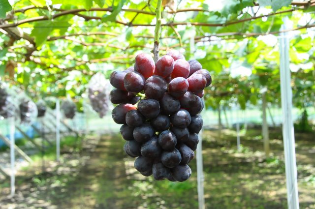 久家ぶどう園は、石岡市(旧八郷町)でおよそ60年続くぶどう園です。久家正輝さんは、その2代目。県内の、欧州系ぶどう栽培の先駆者です。欧州系ぶどうを始めたきっかけについてお聞きしました。 「およそ10年ほど前、当時の主力商品であった巨峰の価格が下降傾向にありました。このまま巨峰だけを作っていては、食べていけなくなる…そんな危機感を感じていました。ちょうどその時、茨城県の園芸研究所で欧州系ぶどうの研究を行っていることを耳にしました。県と協力して、これからは欧州系を育てようと決めました。」久家さんは、県外のぶどうの名産地に、何度も研修に出かけたそうです。さらに当時は、茨城県のぶどう連合会会長を務めていたので、会員と共に欧州系ぶどうの勉強会や栽培講習会を重ねました。