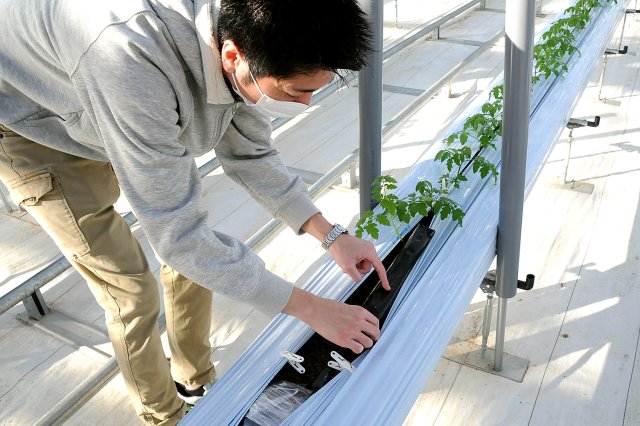 土の代わりにサンゴ砂礫を使い、培養液と呼ばれる肥料を溶かした液体を使う養液栽培。 換気を行い、養液や肥料を与えるのは施設のシステムですが、その設定を行うのは人。北茨城ファームのスタッフ達は、季節によって変わる温度や湿度、環境の変化を日々見極め、毎日トマトの木々を見ながら管理を行っています。 「甘いトマトを作るために、無駄な葉や枝を切ったり、実の色や木の成長具合を見て、天候を見ながら肥料濃度の微調整などを行っています。とにかく見てトマトの声を聞くことが大切だと思います」