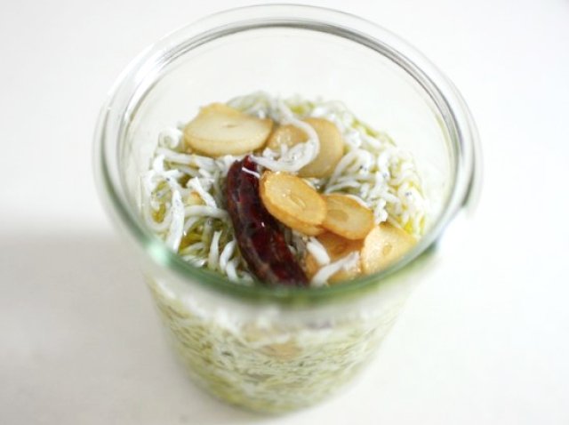 にんにくとオリーブオイルとの相性がとても良いしらす。にんにくとオリーブオイルに漬けておくだけで、1週間程度日持ちするそうです。 おすすめのレシピを教えていただきました。 ≪しらすのオイル漬け≫ ■材料 ・釜揚げしらす…100g~200g ・オリーブオイル…100ml~120ml ・にんにく…ひとかけ ・鷹の爪…1本 ■作り方 ①にんにくを薄切りにして、鷹の爪の種を取る。 ②オリーブオイルとにんにく、鷹の爪を火にかける。 ③煮沸殺菌したビンにしらすを入れ、②を上からかけ入れる。 ④30分~1時間置いたらできあがり♪ オイル漬けは、そのままサラダやクラッカーにのせたり、しらすトースト、アンチョビと絡めてパスタ、混ぜ込んで焼きおにぎり、バゲットにトマトとともにのせるだけのカプレーゼなど様々なアレンジができます。ぜひお試しください。