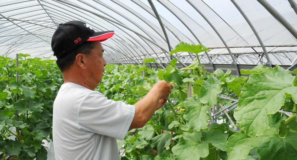 農業従事者の全国的な高齢化は、農業王国茨城にとっても大変大きな問題です。長洲さんには後継者がいますが、茨城のメロン農家もやはり減ってきているのが現状です。 「メロン農家が増えることが今後の夢です。6月中旬頃までメロンの価格が安定すれば、メロン農家はもっと増えると思います。メロン農家から離れて野菜作りに移行していった農家を何人も知っていますが、そんな人達がメロン作りに戻ってくるくらいメロンがもっと高値で売れたら…と思います。野菜農家でも、小さい面積でいいからメロンを作ってみてほしい。メロンはやりがいのある農産物ですので、まずは少しでも作るという一歩を踏み出してほしいですね。」そう言って長洲さんは、8月から出荷が始まるアールス(マスク)メロンのハウスへと向かって行きました。