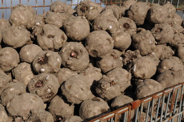 10月の大子町では、各所で一面に白緑色の綺麗な葉を付けたこんにゃく畑が見られます。約1カ月もすれば、葉はすっかりと枯れ、いよいよ土の下のこんにゃく芋の収穫が始まります。 「こんにゃくは、それほど手間のかかる作物ではないのですが、収穫がとにかく大変です。掘り起こすまでは機械でやりますが、掘り起こした芋の選別は人の手でなければできない。小さい芋を先に取って、大きい芋を綺麗に掃除していく作業を行いますが、この辺りの土は特に粘土質が強いので、芋にへばり着いた土を取るのが容易じゃないんです。」10月末から12月半ばにかけて行われる収穫作業。寒い日はマイナスにまで気温の下がる大子町で、かじかんだ手を吐息で温めながら芋の選別を行う菊池さんとスタッフの姿が印象的でした。