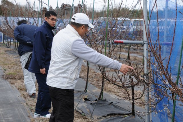 『水戸の梅産地づくり事業』は、県と水戸市、JA水戸、加工・販売団体と生産者とが一体になって取り組んでいます。行政と農協からの積極的なサポートは、「生産者にとって何よりの励みになる」と根本さんは言います。 「県の担当者が農家ごとに畑の土壌診断を行ってくれるので、その診断を基にした肥料の計算や、施肥のタイミングなども常に相談しながら行えます。さらに、虫の防除薬なども、農協と連絡を取り合いながら行っています。