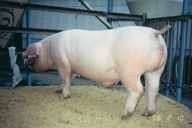 根っからの動物好きで、子供の頃から豚と共に育ち、自分の農場にいる豚の一匹一匹全てを個々に認識しているという(有)キングポーク代表の小菅さん。動物好きからか競走馬も所有していたそうです。 「馬を持っていたので、豚を見る目も仲間達とは少し違っていました。アメリカにデュロック種の買付けに行った時、その会場にいたチャンピオン豚などと比べると見た目の悪い豚がいました。周囲の誰もが『これだけはやめておけ』と言いました。が、私にはそうは思えなかった。馬の見方からいうと、皮膚の柔らかさや毛並が非常に重要です。その豚は体は小さかったものの皮膚が薄く、細くて柔らかい被毛が生えていたのです。豚の毛の柔らかさは身体の柔らかさ、肉の柔らかさを表します。その豚は皮膚・被毛の素晴らしさに加えて尾の付け根が太かった。尾の付け根が太い豚は大きくなるので、これは間違いなく素晴らしい豚になると確信しました。仲間達に笑われながらも、格安でこの豚を購入しました。」 小菅さんの予想通り、この豚は、アメリカで仲間達が購入したどの豚よりも大きくなり、艶やかで柔らかな肉質の元豚となる素晴らしい豚に成長しました。その豚は“タンカー・タイム”と名付けられ、その子孫達は今でも全国各地で開かれるオークションで上位を占めているそうです。 この経験から自身の目利きに自信を持った小菅さんは、豚の皮膚皮毛爪の質に重点をおいて系統(遺伝)から肉質の改良を行いました。また、より強健性の優れた豚を作る為に、肩甲骨の開きや爪の質等を中心に改良選抜していったそうです。またランドレース、大ヨーク種も同じ方法で改良選抜する事によって、デュロック、ランドレース、大ヨークの3品種が同じ肉質に仕上がり、小菅さんの育てた豚はどれも素晴らしい豚になっていったそうです。