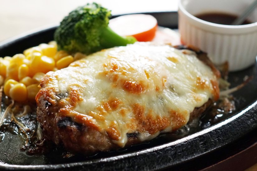 サンローゼの一番人気メニューは、グリルで焼き、じっくりオーブンで焼いて仕上げる、ふっくらやわらかでジューシーなハンバーグ。チーズハンバーグ、和風おろしハンバーグ、目玉焼きハンバーグなど6種類のハンバーグから選べます。