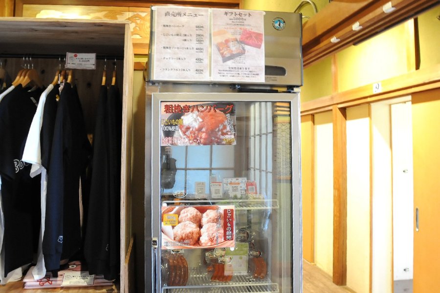 店内の一画に直売コーナーも併設し、ハンバーグ、焼売、ソーセージなどの加工品も販売しています。